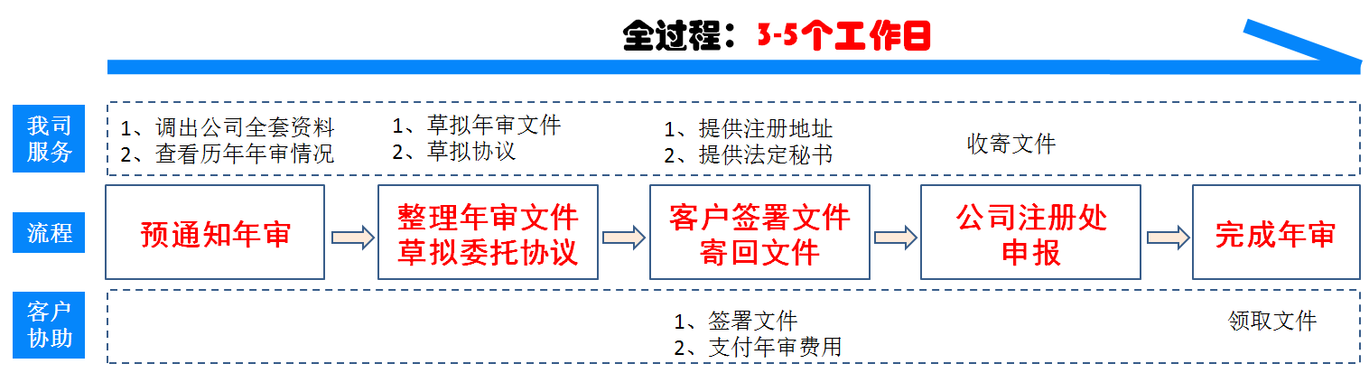 1)客戶確定準(zhǔn)備年審后,我司按照文萊注冊處要求,準(zhǔn)備所有申報年審的資料