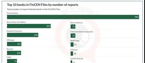 “可疑交易”份數(shù)最高的10家銀行依此為:德意志銀行、紐約梅隆銀行、渣打銀行、摩根大通、巴克萊銀行、匯豐銀行、美國(guó)銀行、中國(guó)投資有限責(zé)任公司、美國(guó)富國(guó)銀行、花旗集體、法國(guó)興業(yè)銀行。
