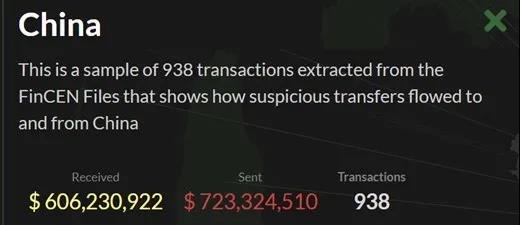 報(bào)告也提到了中國(guó)大陸。文件顯示有938宗“可疑交易”與中國(guó)大陸有關(guān),有超過(guò)6億美元流入中國(guó)大陸,7.23億美元從中國(guó)大陸流出。