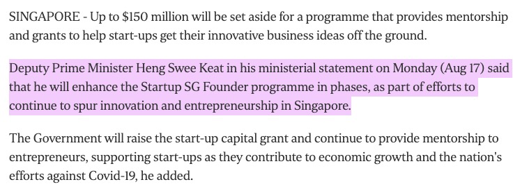 新加坡政府將撥出高達(dá)1.5億新幣的資金,用于一項(xiàng)提供指導(dǎo)和資助的計(jì)劃,以幫助初創(chuàng)企業(yè)將其創(chuàng)新的商業(yè)想法付諸實(shí)施。